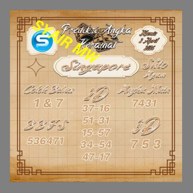 Selamat datang untuk semua sobat setia yang merupakan tempat memberikan Prediksi Syair SGP akurat untuk membantu para sobat setia agar berhasil di Togel SGP. Kode Syair Singapura yang admin hadirkan tentu telah di design dalam bentuk gambar modern sehingga dapat memudahkan sobat setia dalam melihatnya.